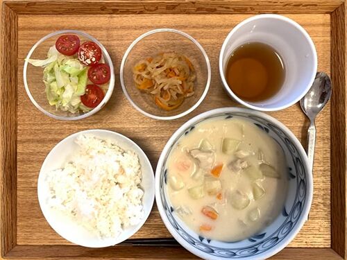 ~今日のメニュー~ 【朝食】焼き魚(鮭ハラス) 【昼食】給食 【夕食】クリームシチュー 【補食】おにぎり1個・ジュニアプロテイン2杯