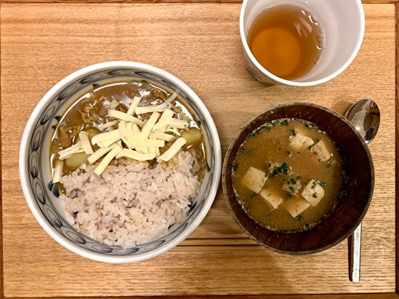 カレーライス(雑穀米・白米・豚肉・玉ねぎ・人参・じゃがいも・チーズ)(ご飯の量200g)